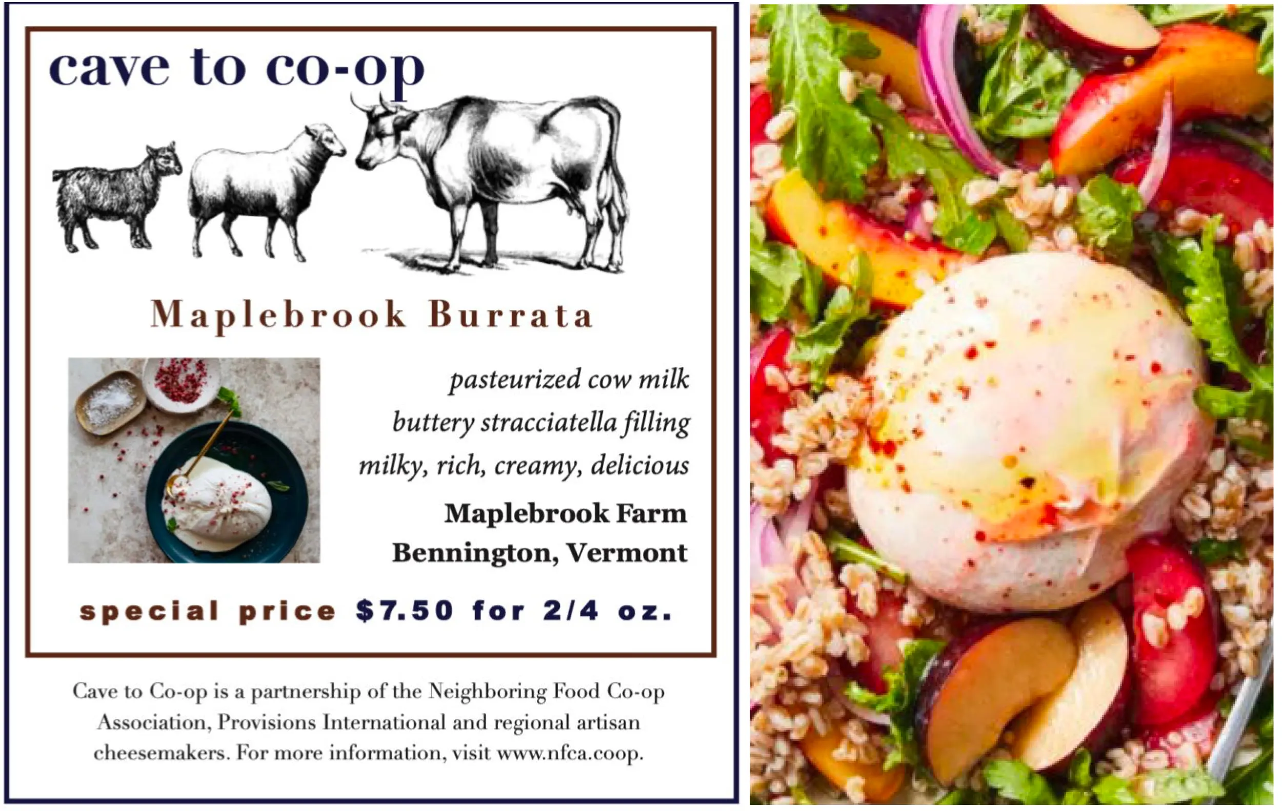 Our Cave to Co-op for August 2025 is Burrata from Maplebrook Farm in Bennington, Vermont. Maplebrook Farm produces award-winning handmade artisanal cheeses…
