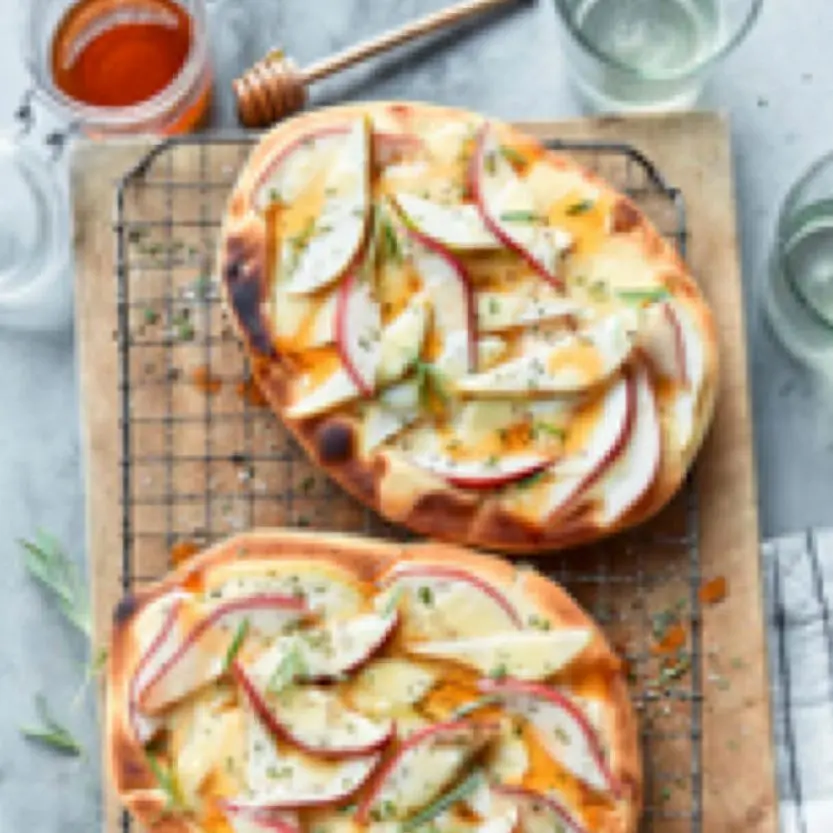 2.Bake until the pears have softened and the cheese has melted, 7 to 10 minutes. Drizzle the flatbreads with a tablespoon of honey (or more, if desired) and season with a pinch of salt and a couple grinds of pepper. Cut the flatbreads into pieces and serve warm.