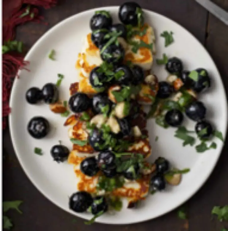 Grilled Halloumi w/Blueberries & Herbs
