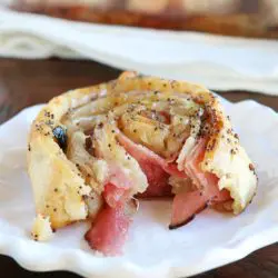 3. Next combine the butter, brown sugar, Worcestershire sauce, mustard, and poppy seeds in a saucepan over medium heat. Whisk until the butter is melted and the glaze is smooth and combined. Pour evenly over the rolls.