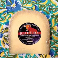 Rupert is stamped with a whale shape as well as the batch number when the curds are being pressed, no doubt an homage to its grandeur and heft. The cheese is a dense, fruity, butterscotchy, and nutty experience, with a well-honed flavor profile that extends on the palate long after the last bite. The wheels are aged for a minimum of nine months to ensure the development of the cheese’s dignified, lingering flavor.