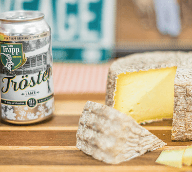 Inspiration is a raw cow milk cheese that is washed with von Trapp Brewing Trösten Lager this season. Trösten translates as ‘comforting’ and its rich chestnut toasty notes and smokey malty but light finish is a perfect complement to this rustic cheese.