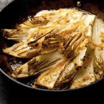 1. Trim the endive and cut lengthwise into quarters. Heat the olive oil in a sauté pan and soften the shallot for 2 minutes. Add the endive quarters, cut side down and cook for 3 minutes. Turn them over, cover the pan and cook for another 3 minutes, then season with salt and pepper. Arrange the cheese over the endive and sprinkle with the oregano. Slide under the broiler or into the hot oven for a few minutes until the cheese is golden and bubbling. Serve immediately.