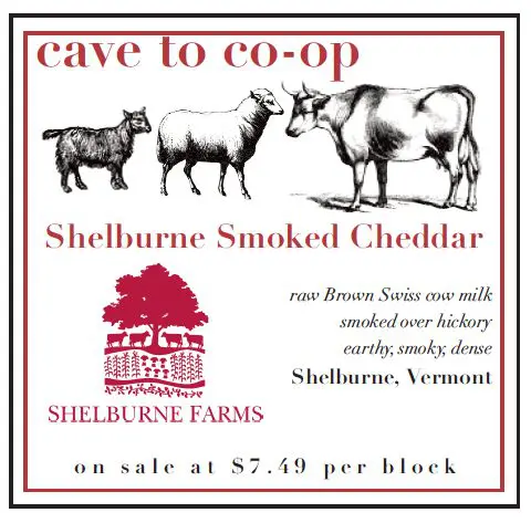 Our Cave to Co-op for November 2020 is Shelburne Smoked Cheddar—an award-winning raw Brown Swiss Cow-Milk Cheddar, Hickory-wood cold-smoked—from Shelburne Farms, Shelburne, Vermont.