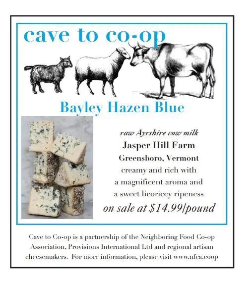 Our Cave to Co-op for October 2021 is Bayley Hazen Blue from Jasper Hill in Greensboro, Vermont.
