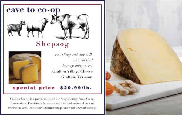Our Cave to Co-op for November 2022 a raw sheep and cow milk, natural rind firm cheese called Shepsog from Grafton Village…