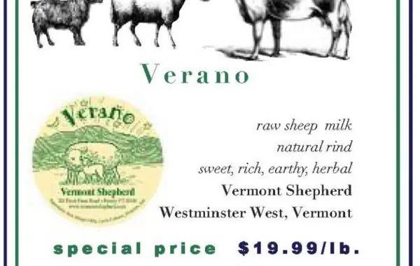 Our Cave to Co-op for August 2020 is Verano — a raw sheep-milk cheese aged 3-5 months from Vermont Shepherd in Westminster…