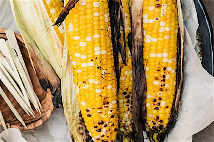 Corn: To achieve perfectly grilled corn, soak it in cold water for 30 minutes, peel back the husk, remove the silk, and then return the husk. Grill the corn for approximately 15-20 minutes, making sure to turn it frequently.