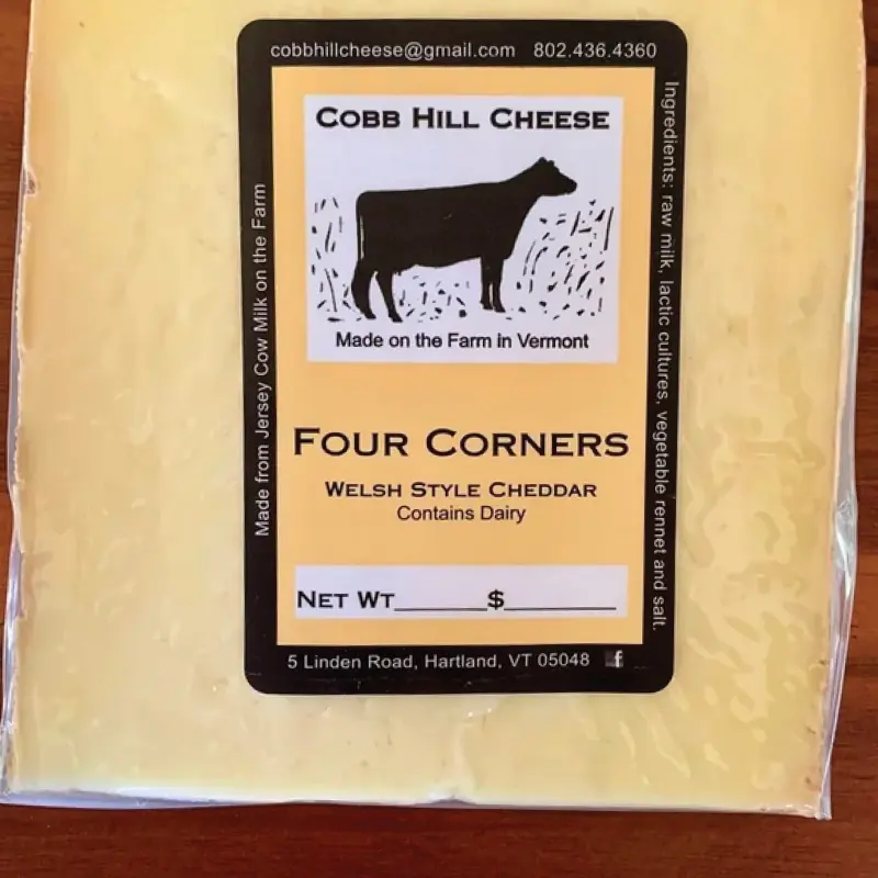Nestled in Hartland, Vermont, Cobb Hill Cheese crafts raw Jersey-milk cheeses using traditional farmstead methods with care for their herd and the land. Four Corners is a Welsh-style cheddar made by hand on the farm from the milk produced by their cows, which graze on fresh grass from May through October.