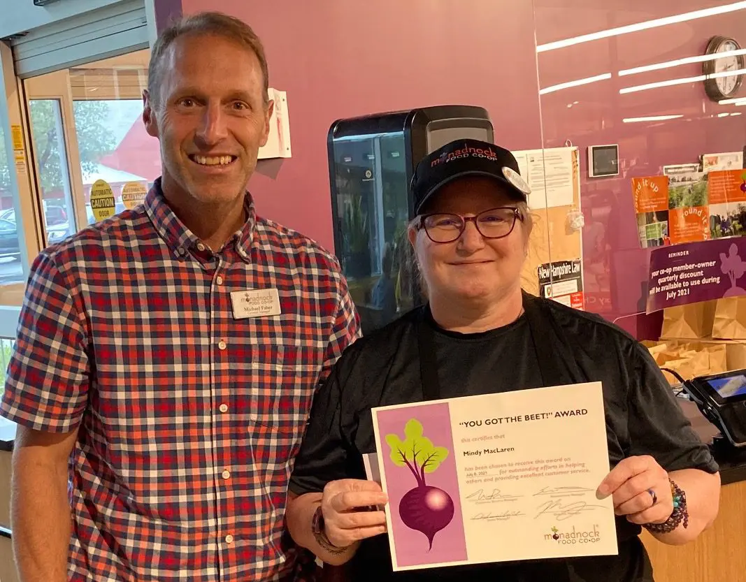 Congratulations to Mindy McLaren – the latest employee to receive the Monadnock Food Co-op’s “Beet Award.”
