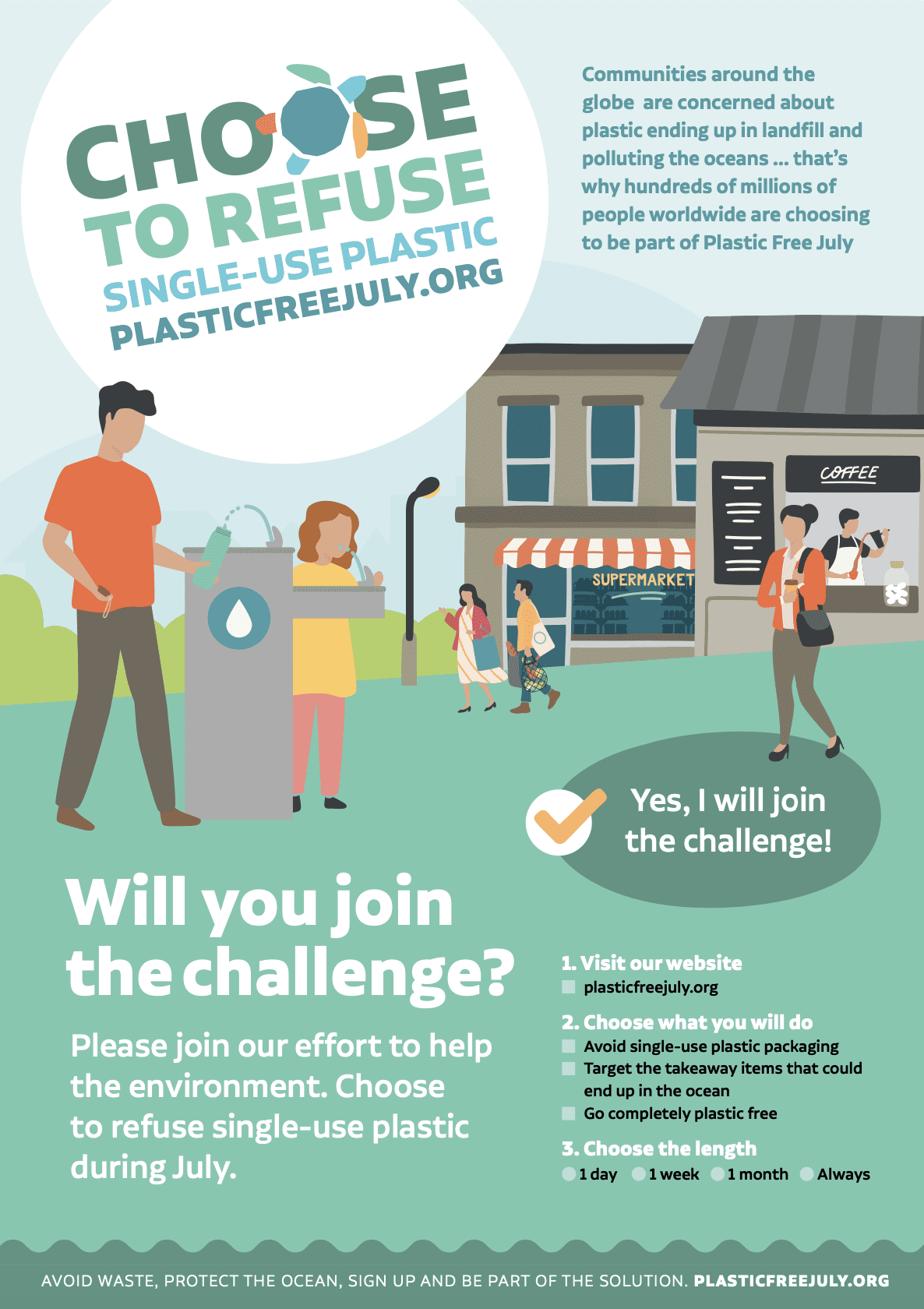 Learn more about Plastic Free July (plasticfreejuly.org), discover alternatives to single-use plastic, and create new habits that positively impact the local and global environment.