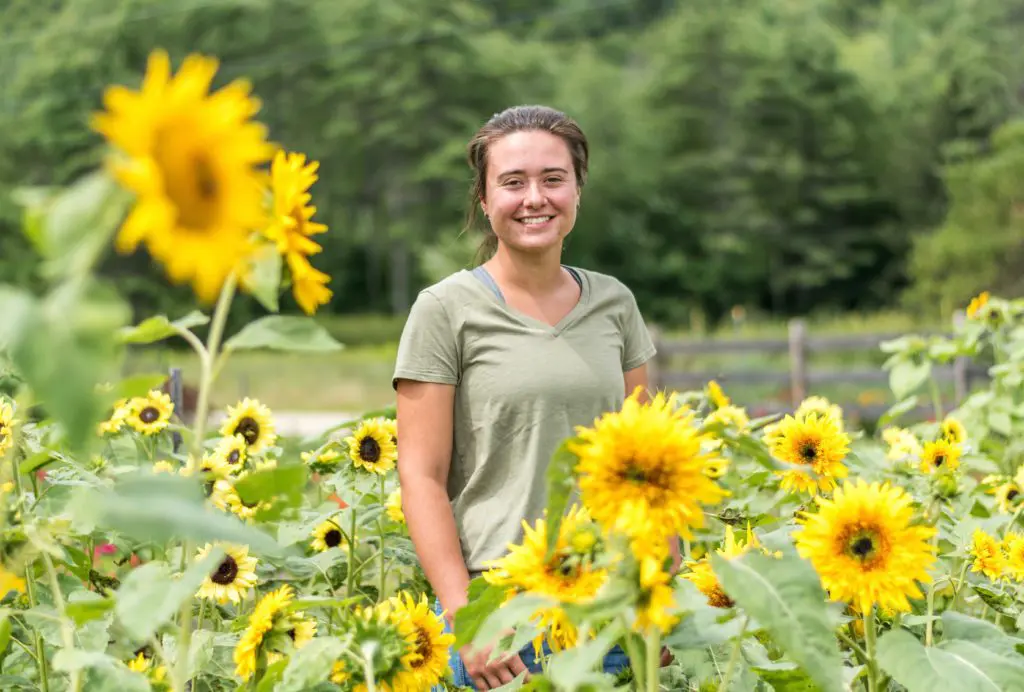 Maegan stands amid a field of sunflowers during a farm tour organized by our co-op.