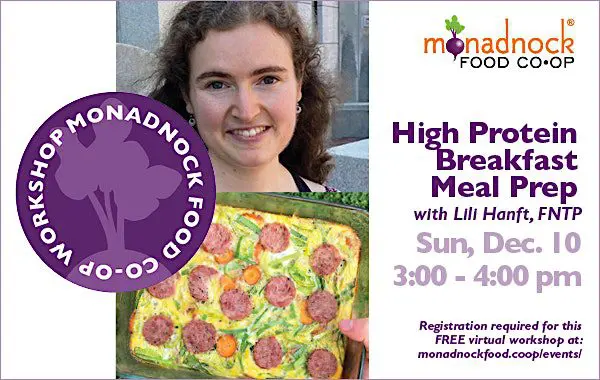 Before the workshop, registrants will receive a handout with an ingredients list and recipes. You can make the recipes along with the presenter or just choose to watch.