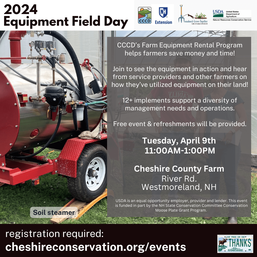 Save time, money, and labor by renting through CCCD’s Farm Equipment Rental Program! Over a dozen implements are available to support a diversity of vegetable, livestock, and dairy farmers. A no-till transplanter, spreader, seeders, topper, steamer and more are available to rent.