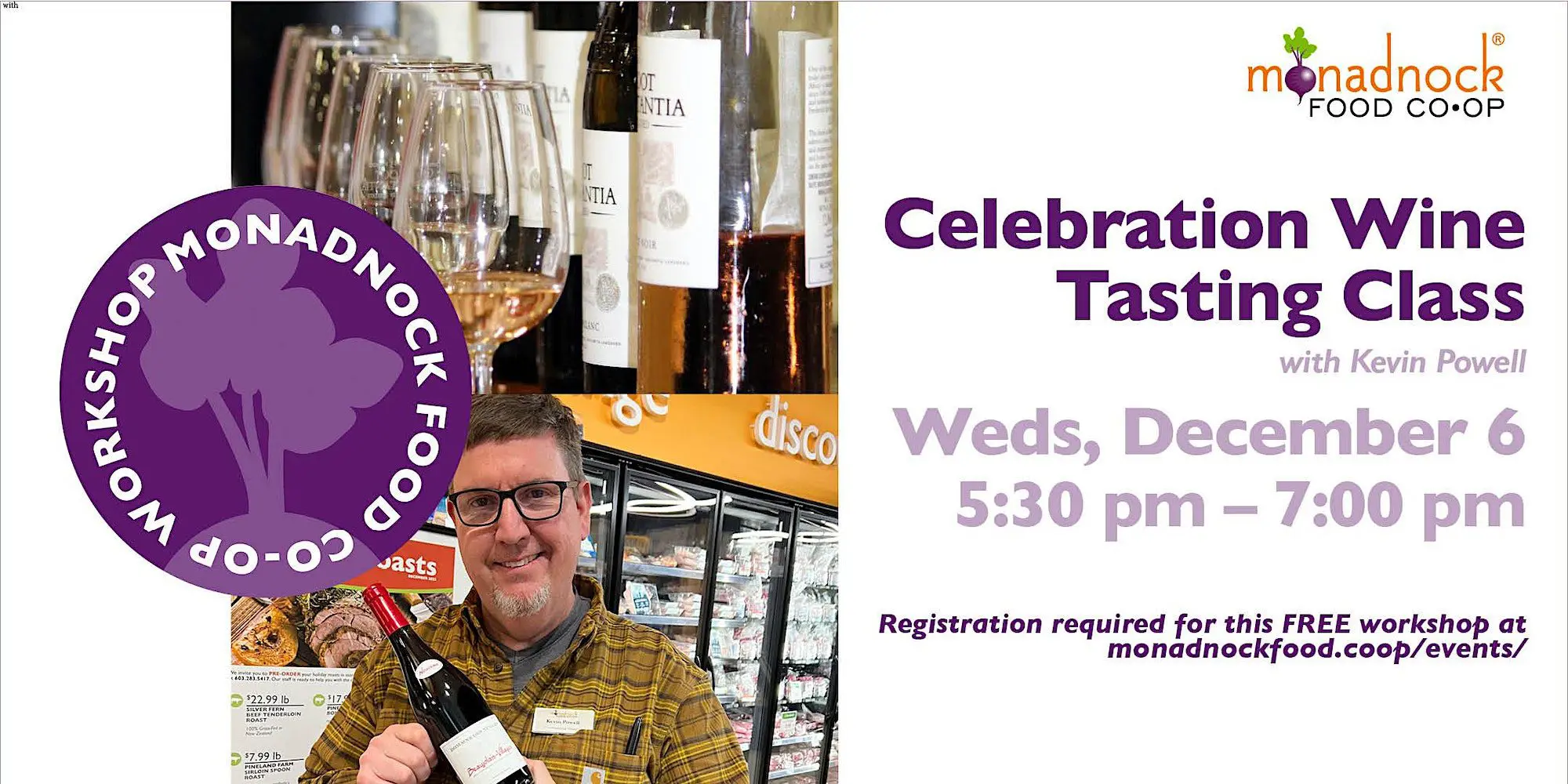 During the class, you’ll have the opportunity to taste a variety of wines sold at Monadnock Food Co-op, learn about their unique characteristics, and discover options for wine pairings. Our host, Kevin Powell, Merchandising Manager at Monadnock Food Co-op and wine connoisseur, will share his expertise with attendees and answer all your burning wine questions.