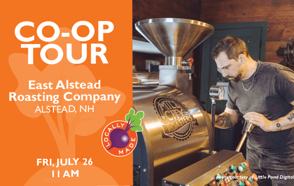 Co-op Farm & Producer Tours are returning for the 2024 season! Join us for a FREE tour of local producer Owen miller’s company, East Alstead Roasting Co., and see the process in person and up close! Space is limited, so RSVP is required. Visit https://eastalsteadroastingco.com to lear more about their company!
