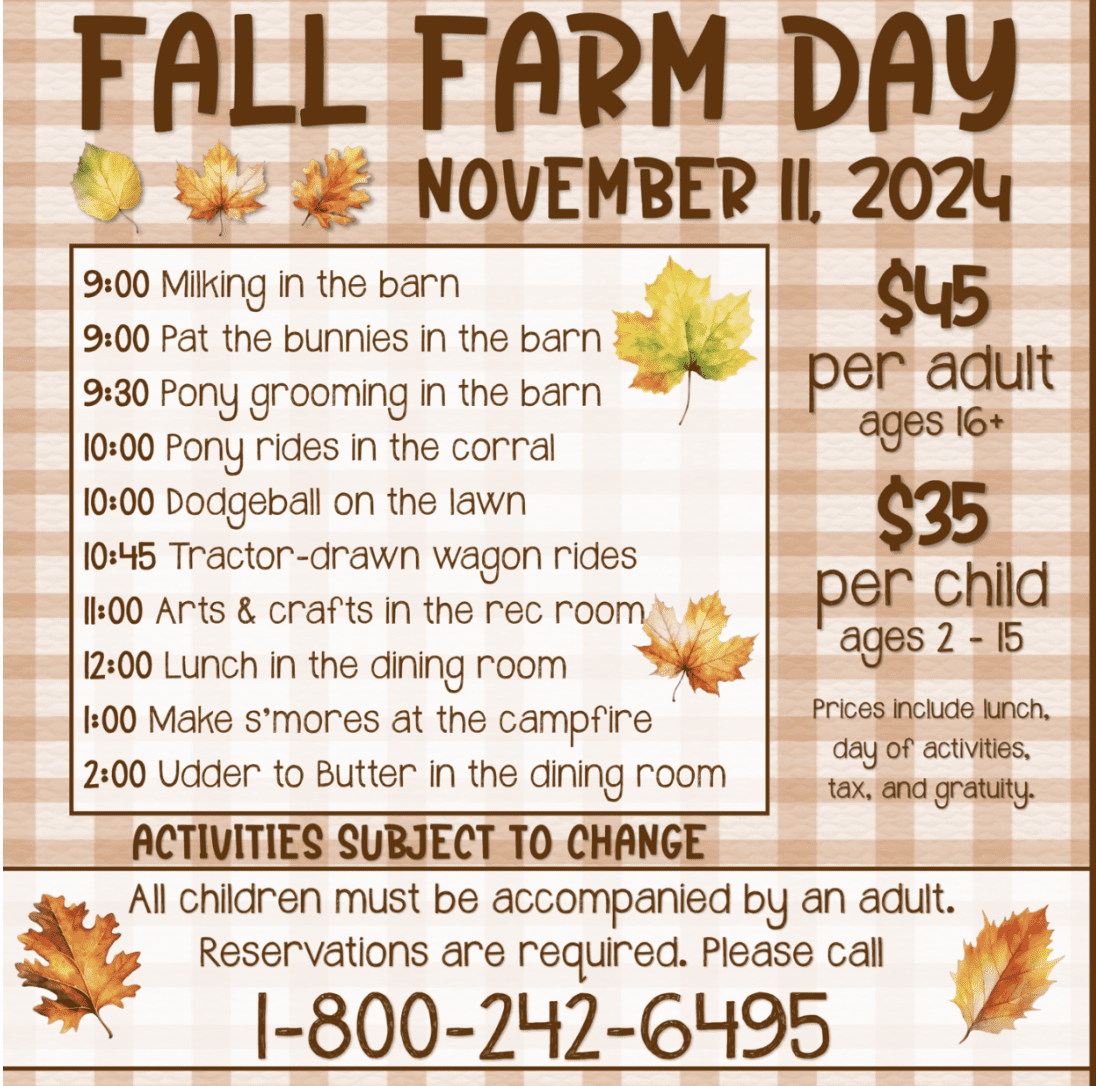 « All Events This event has passed. Fall Farm Day at the Inn at East Hill Farm November 11, 2024 @ 9:00 am - 2:00 pm « Free Coffee & Pastries for Veterans Weave a Mini Wall Hanger » Add to calendar Google Calendar iCalendar Outlook 365 Outlook Live Details Date: November 11, 2024 Time: 9:00 am - 2:00 pm Event Category: Community Event Venue Inn at East Hill Farm 460 Monadnock Street Troy, NH United States + Google Map View Venue Website Organizer Inn at East Hill Farm