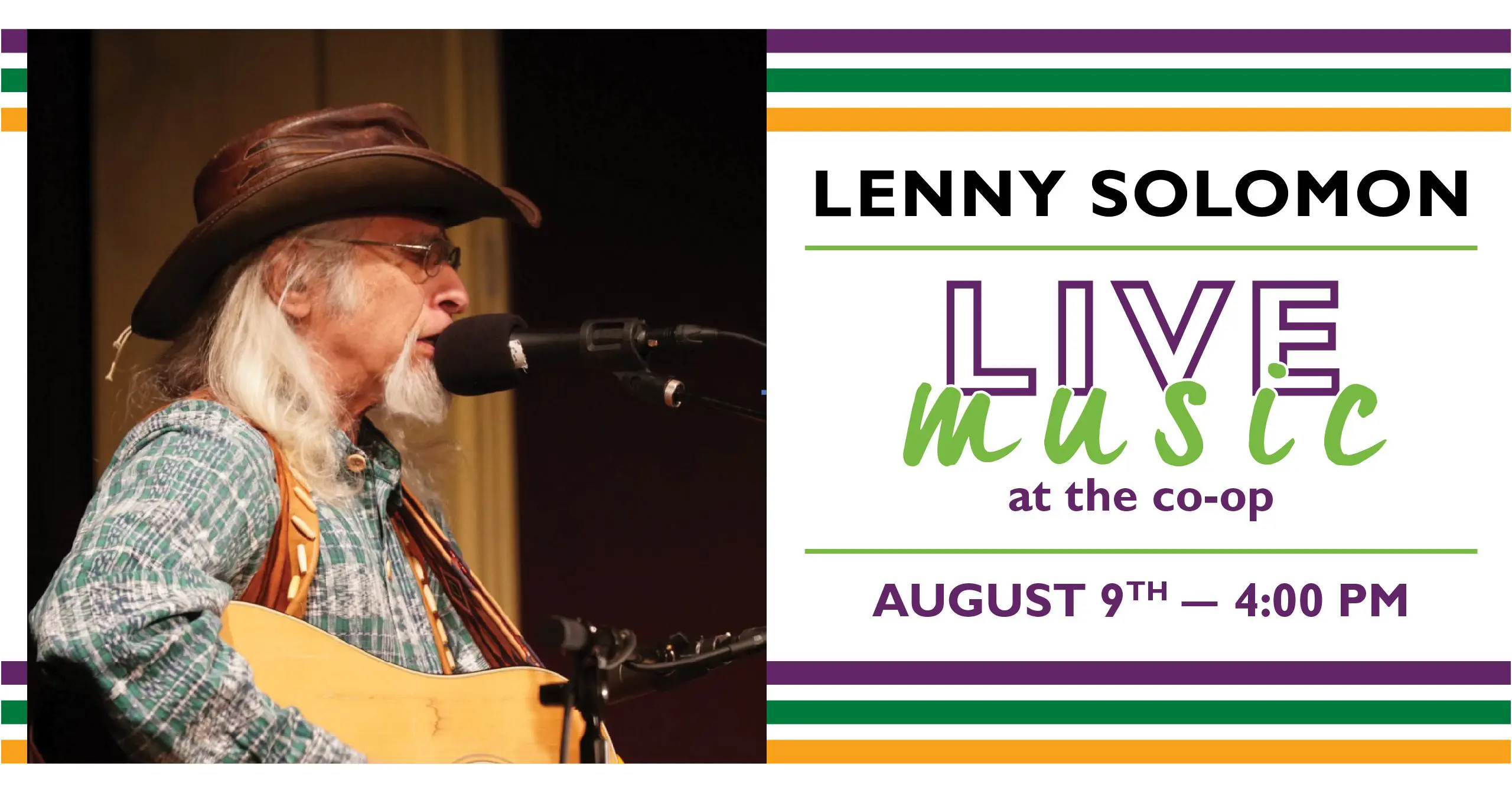« All Events This event has passed. Lenny Solomon Live at the Co-op! August 9 @ 4:00 pm - 6:00 pm « Randy Miller Live at the Co-op National S’mores Day Demo with Jack’s Crackers » Add to calendar Google Calendar iCalendar Outlook 365 Outlook Live Details Date: August 9 Time: 4:00 pm - 6:00 pm