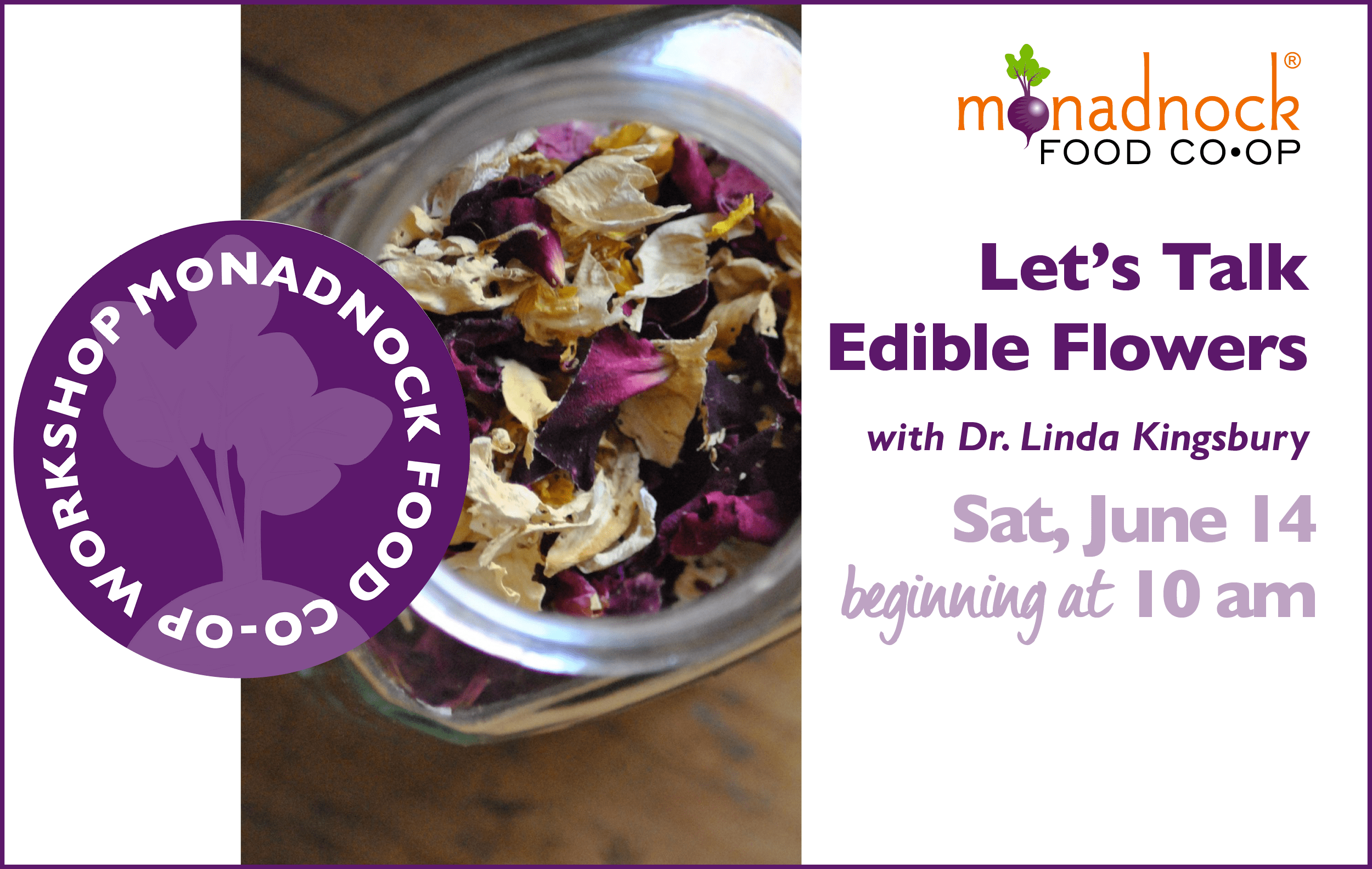 Join Linda Kingsbury at the Co-op for a FREE workshop discussing edible flowers & their many uses! This workshop will be held at the Co-op and requires an RSVP to attend.