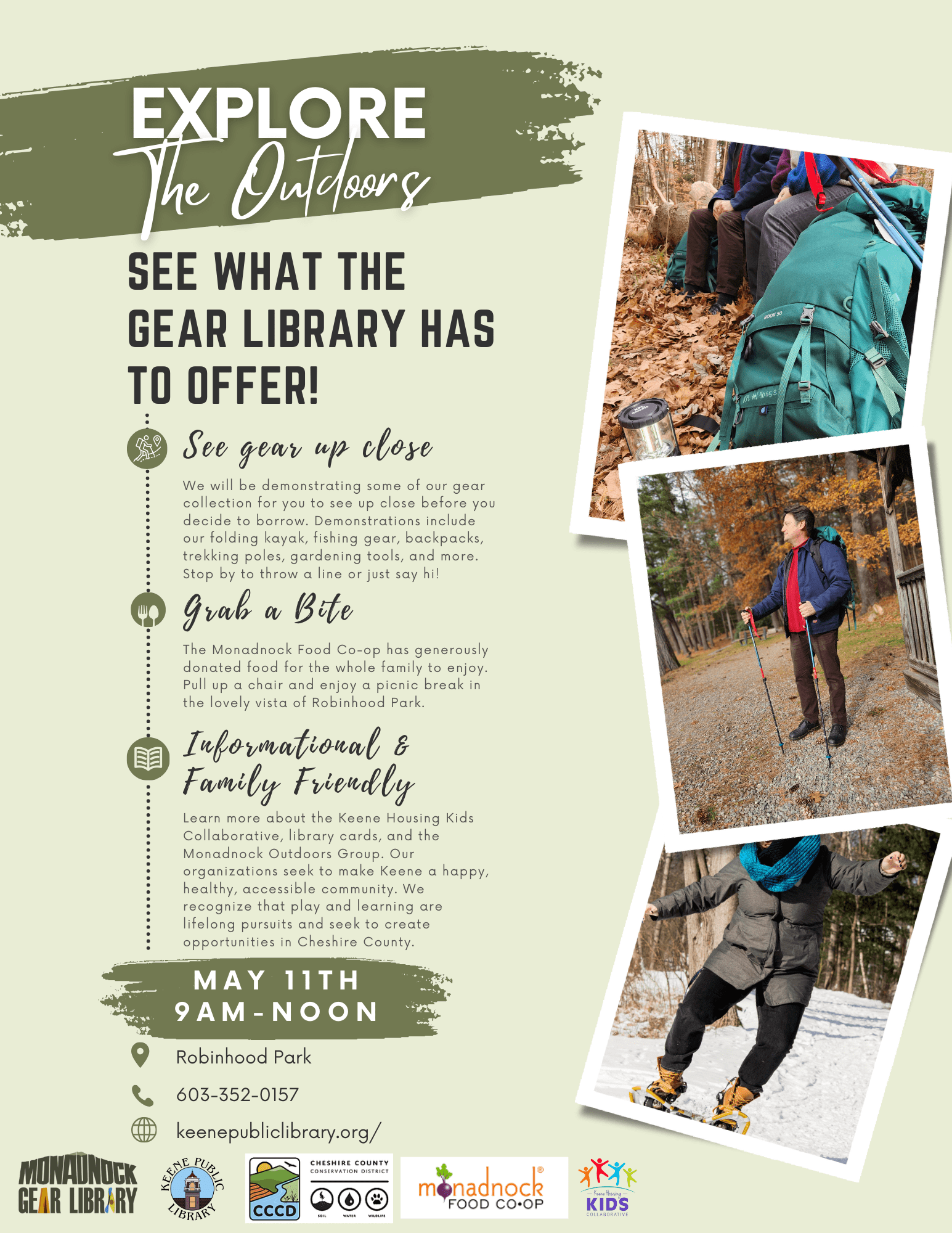 Join the Cheshire County Conservation District and the Keene Public Library for the first Monadnock Outdoors Gear event!