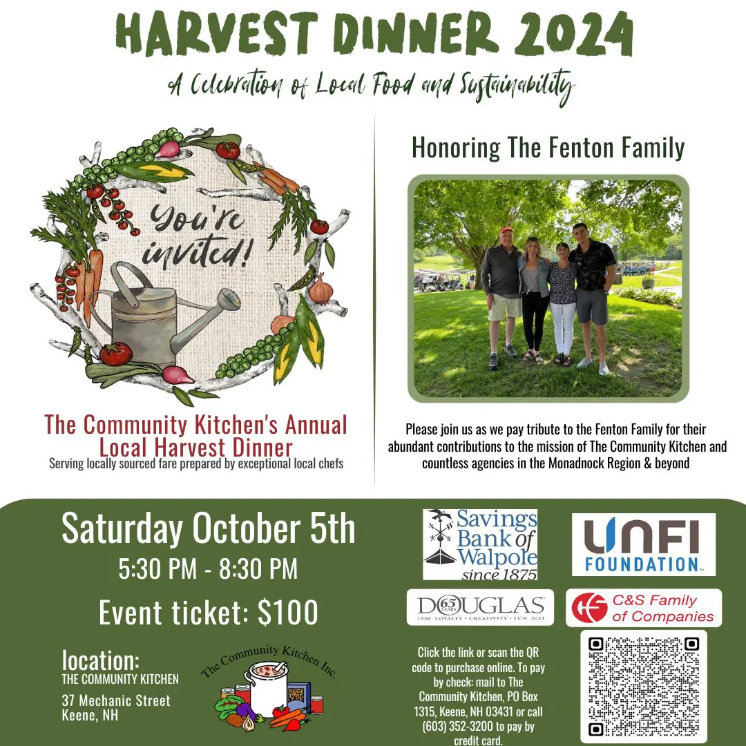 « All Events This event has passed. The Community Kitchen Local Harvest Dinner October 5, 2024 @ 5:30 pm - 8:30 pm « 35th Annual Celebration: Monadnock Conservancy Fall Textile Drive » Add to calendar Google Calendar iCalendar Outlook 365 Outlook Live Details Date: October 5, 2024 Time: 5:30 pm - 8:30 pm Event Category: Community Event Website: https://www.facebook.com/photo/?fbid=913853157440237&set=gm.835283328733700 Venue The Community Kitchen 35-37 Mechanic Street Keene, NH 03431 United States + Google Map Organizer The Community Kitchen View Organizer Website