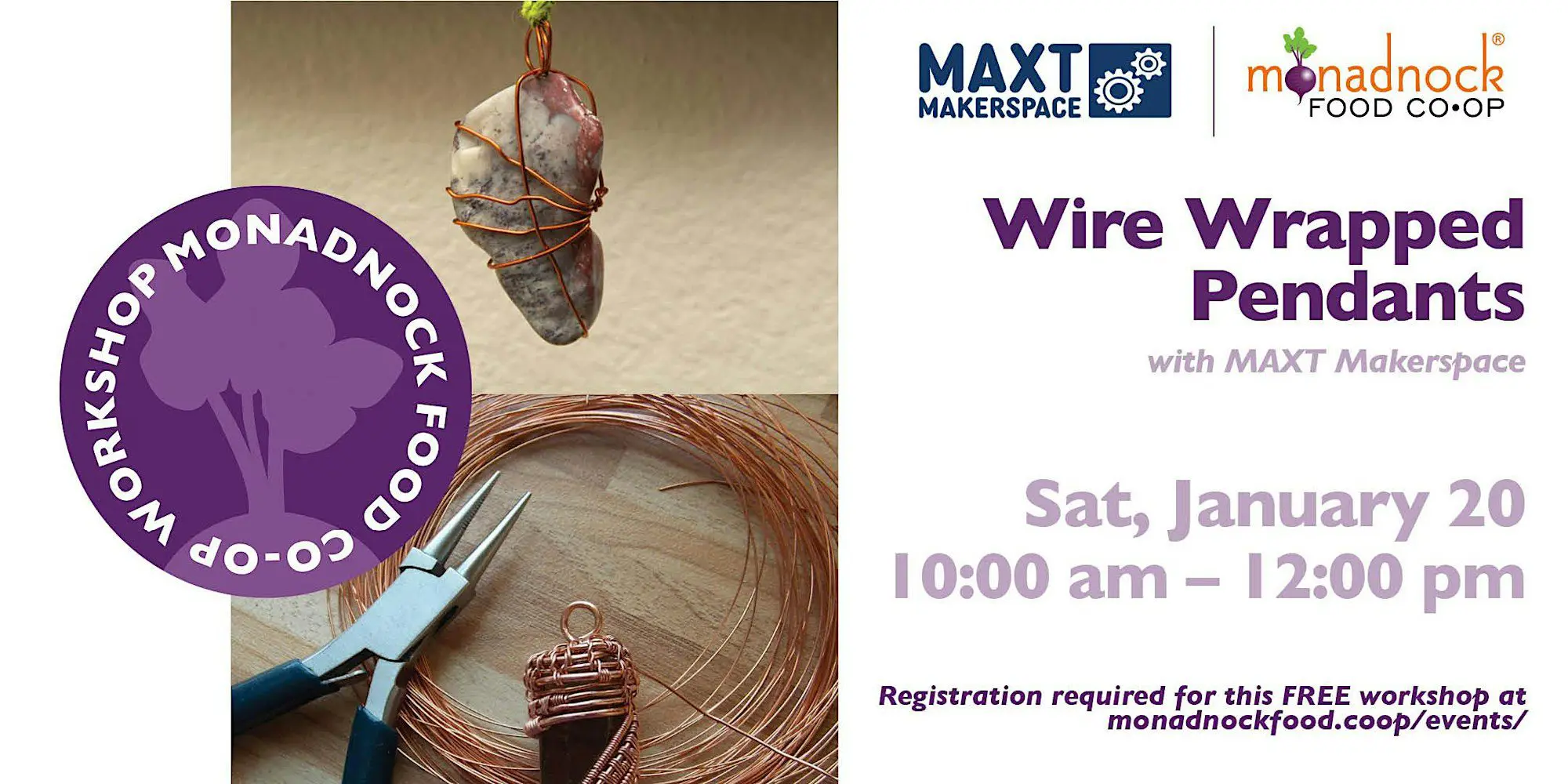 Join MAXT & Monadnock Food Co-op for a family friendly morning of jewlery making! Our instructor Gabby will lead us through making a wire wrapped pendant with your choice of stone. All material are included!