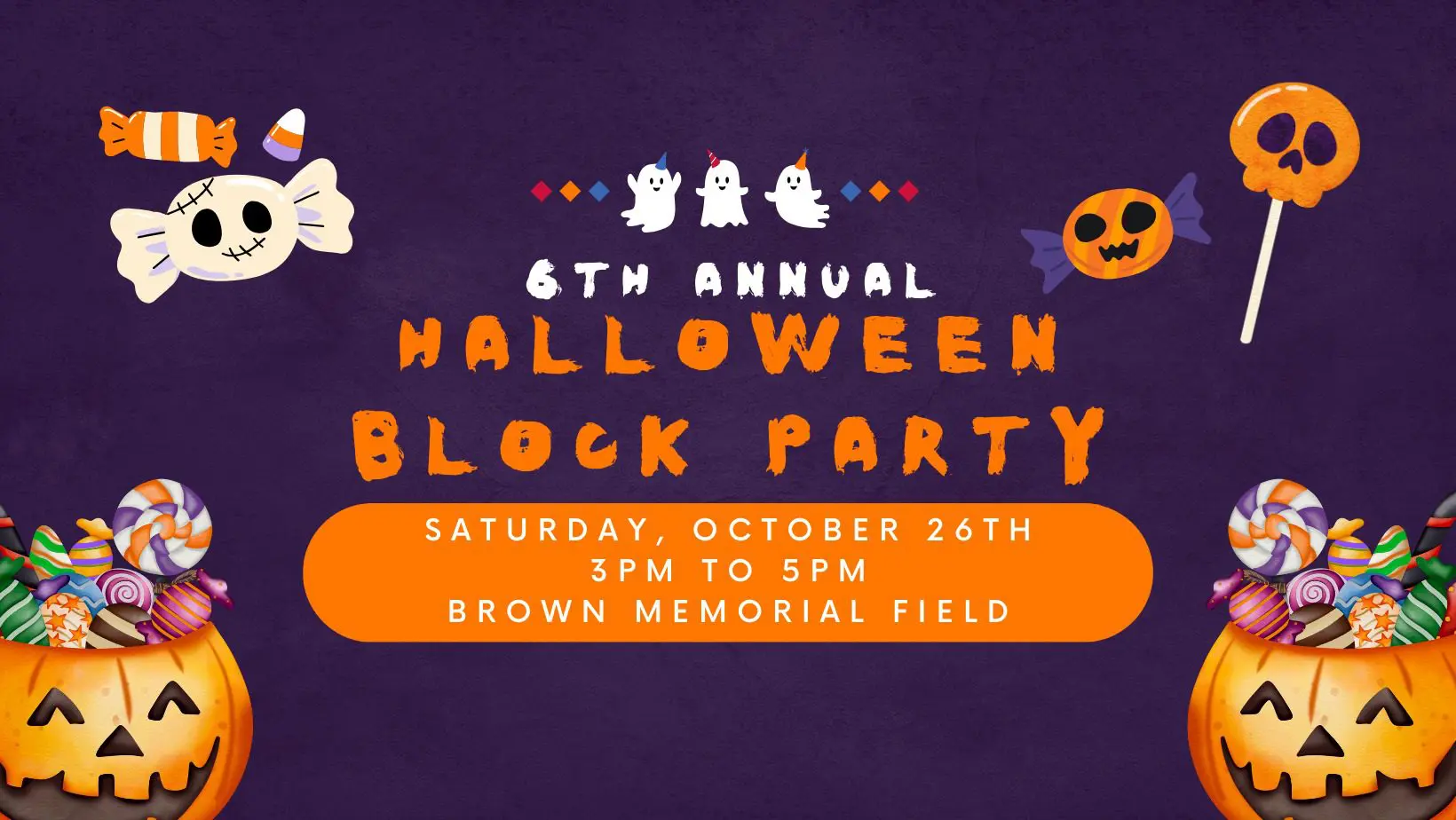 Get Ready for Spooktacular Fun! Don't miss the 6th Annual Halloween Block Party!Enjoy trunk or treating, a costume contest, and thrilling games |