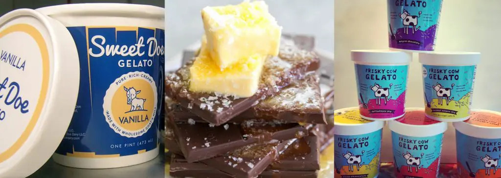 Michael and Lisa Davis make this super-premium goat milk gelato using milk from their registered herd of Nigerian Dwarf dairy goats in Chelsea, VT. Their mission is simple: to surprise and delight their customers by producing a premium farmstead goat milk gelato with superior taste, texture, and digestibility….because no one with a sensitivity to cow’s milk should be deprived of America’s favorite frozen treat. And even the rest deserve the best! Read all about the farm in this article from Seven Days or listen to this short story on VPR.