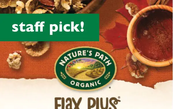 NATURE’S PATH — Flax Plus Maple Pecan Crunch “I like making breakfast parfaits mixing cereal with yogurt and topping it all with…