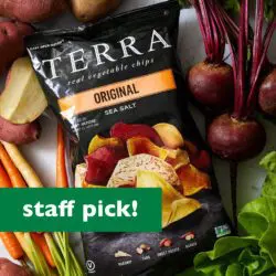 “Eating your veggies just got easier! Tear open a bag of TERRA® Real Vegetable Chips. These aren’t just any chips, they’re the only chef-made chips created by slicing, seasoning, and crisping already tasty vegetables into an even tastier snack. They even come in handy single-serving sizes near the deli, which I love. You’ll find family-size bags in our chip aisle.”